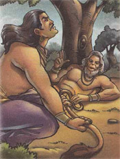 Bheema meets Hanuman in the forest who teaches him lessons on war strategy, winning the enemy with righteousness and sticking to the path of Dharma. Hanuman wanted to free his brother Bhima from his ego and to give him greater strength to fight his enemies.