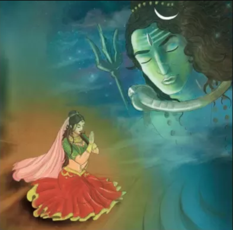 After twelve years of severe penance, Lord Shiva appeared before her